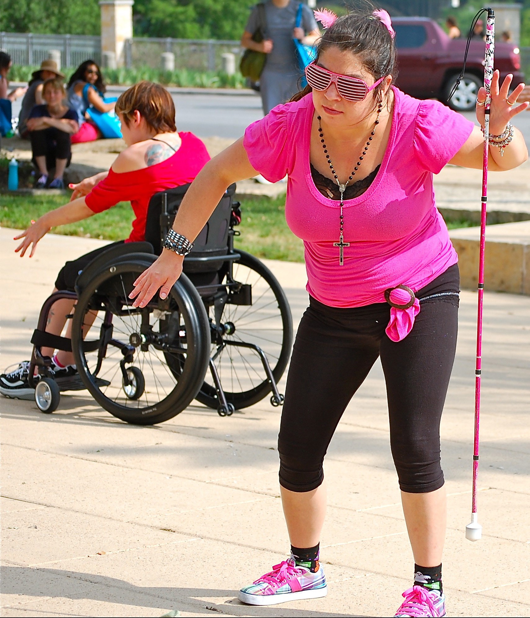 Body Shift dancer Shaniqua Esparza, foreground, and Tanya Winters perform during the April 2014 Crippin’ the Streets performance in downtown Austin.