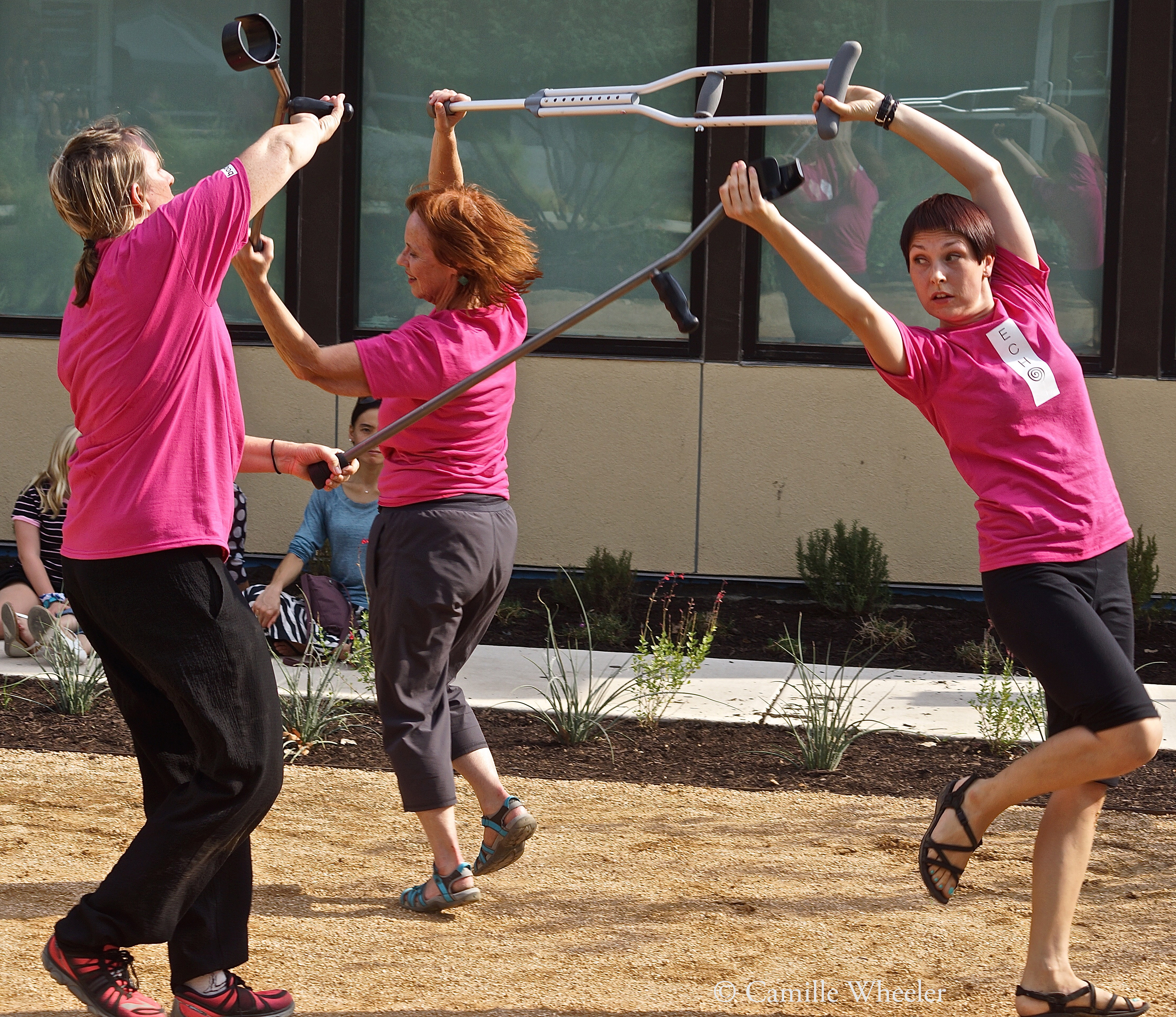 One crutch, two walking sticks, and three Body Shift dancers — from right, clockwise, Silva Laukkanen, Donna Woods, and Peggy Lamb — equals tremendous motion during the Sept. 27 ECHO performance.
