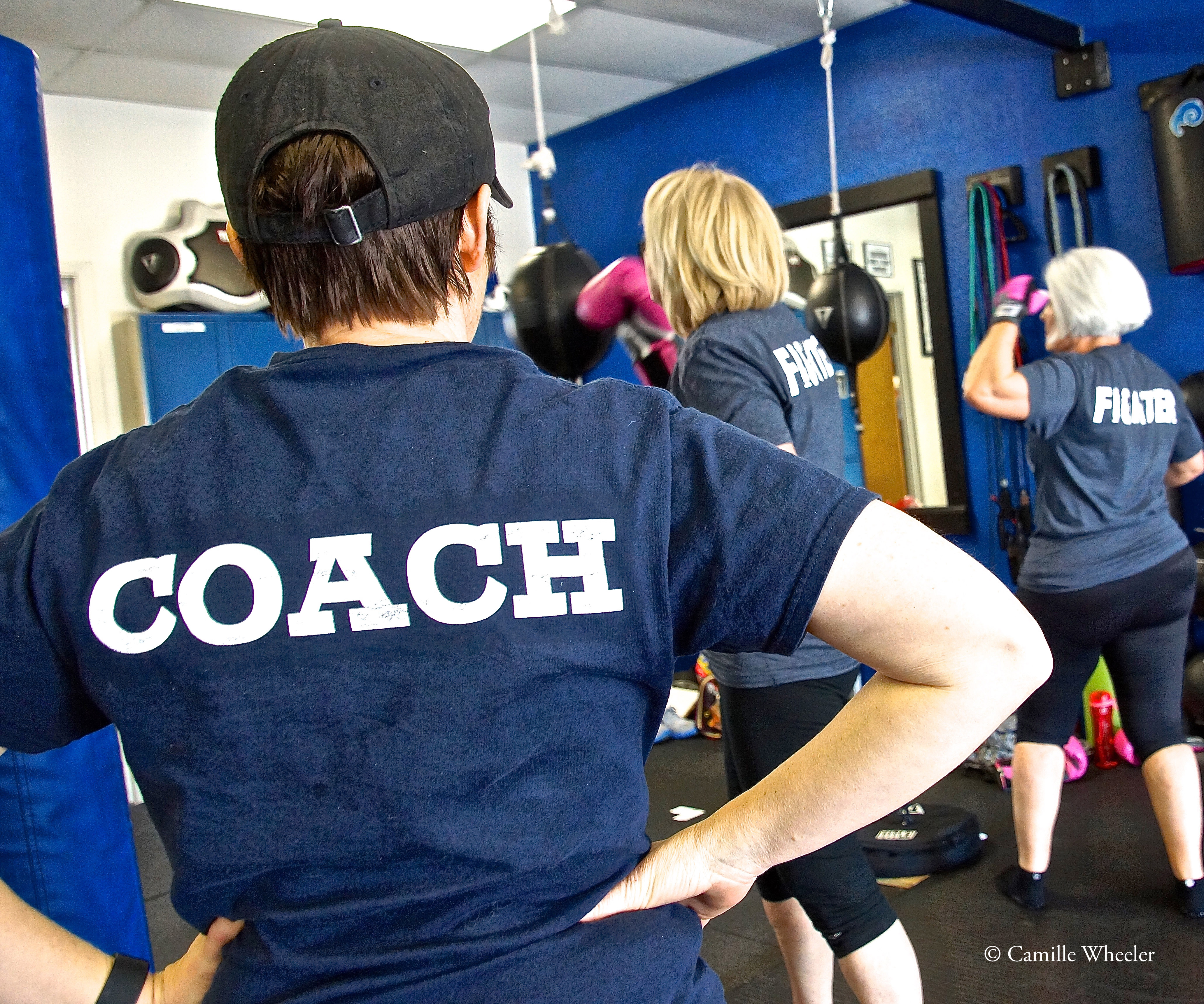 Coach Kristi Richards completed Rock Steady Boxing coaching certification training in September 2015 as one of the final steps toward her dream job: coach and founder of Rock Steady Boxing Austin, which held its first class on Nov. 4, 2015. Richards scans the gym during classes, watching for the first signs of those who need help. She’s quick to offer a steadying hand, help someone glove up between workout stations, or plant herself beside boxers, reminding them of punching sequences: “Jab, hook, uppercut. Jab, hook, uppercut …” Described as “electric and positive” by one of her boxers, Richards draws upon the Rock Steady Boxing curriculum and her background as a senior fitness group instructor to offer diverse workouts. “Just going to a regular gym, sure it’s great for them, but it’s a whole lot more fun to hit stuff,” she says of her boxers, all of whom have Parkinson’s disease.