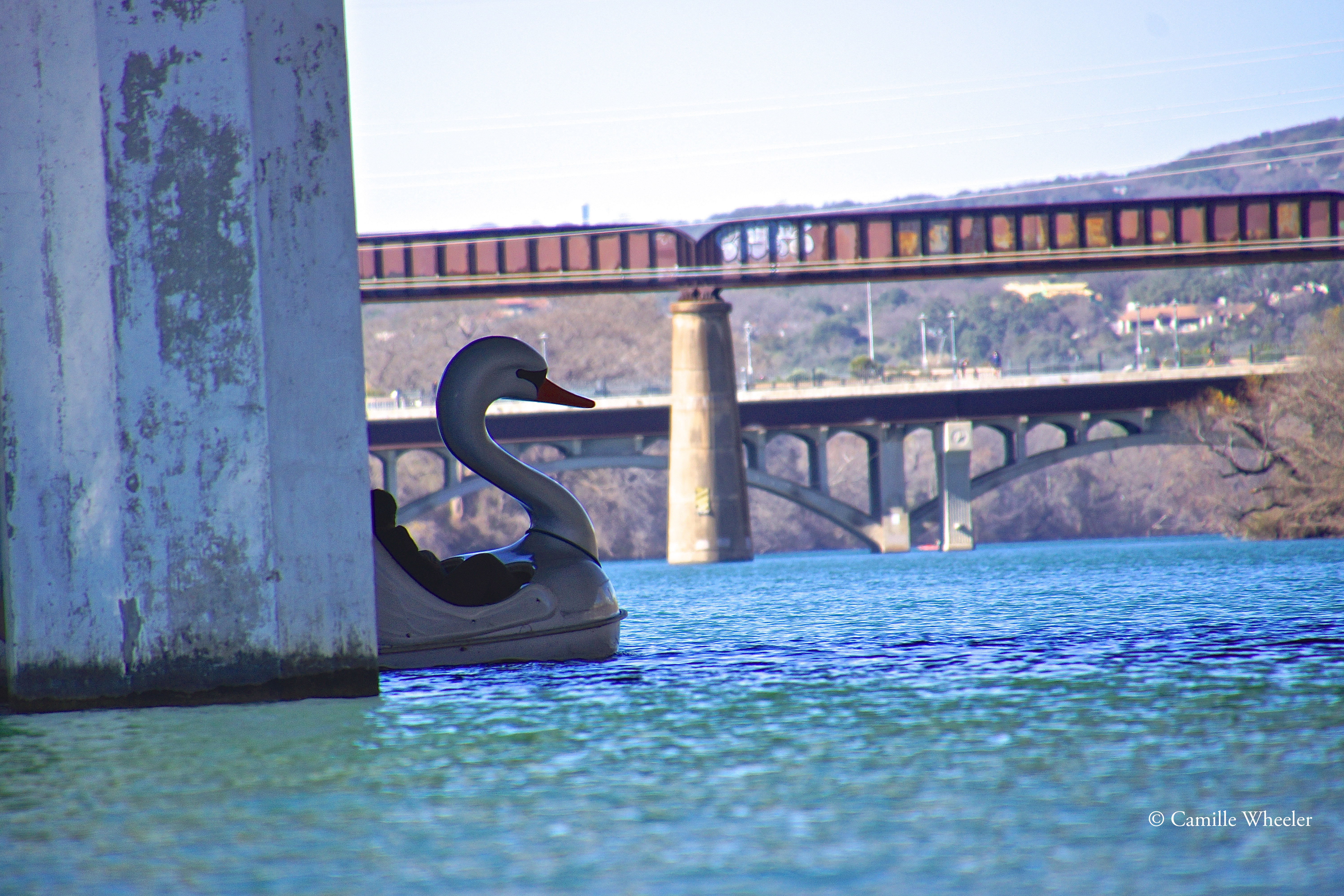 Lady Bird Lake has its share of unusual birds: This swan pedal boat seemingly came out of nowhere beneath the Ann W. Richards Congress Avenue Bridge.